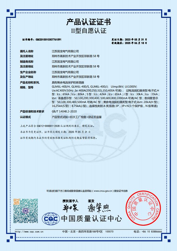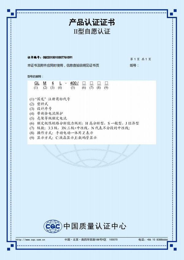 GLM6L-400-630志愿認證證書